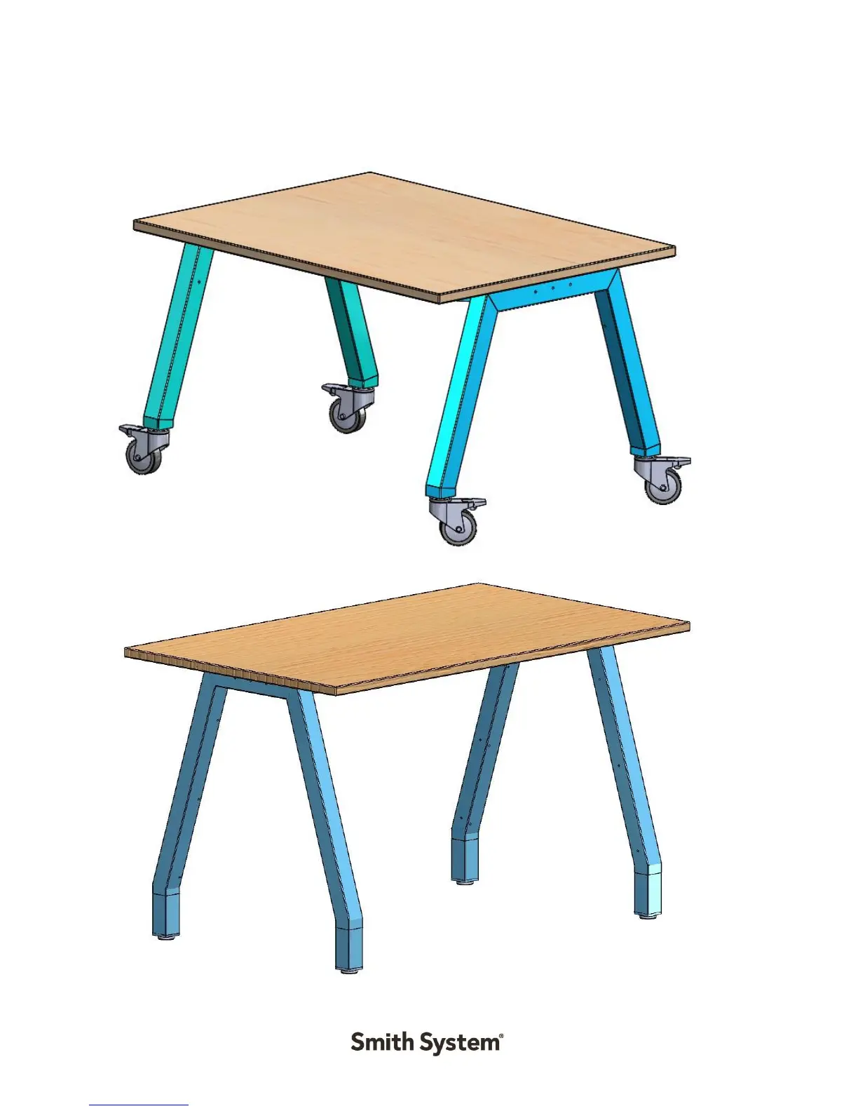 Helpful hint: Lock all casters to prevent unexpected rolling when table legs touch down.