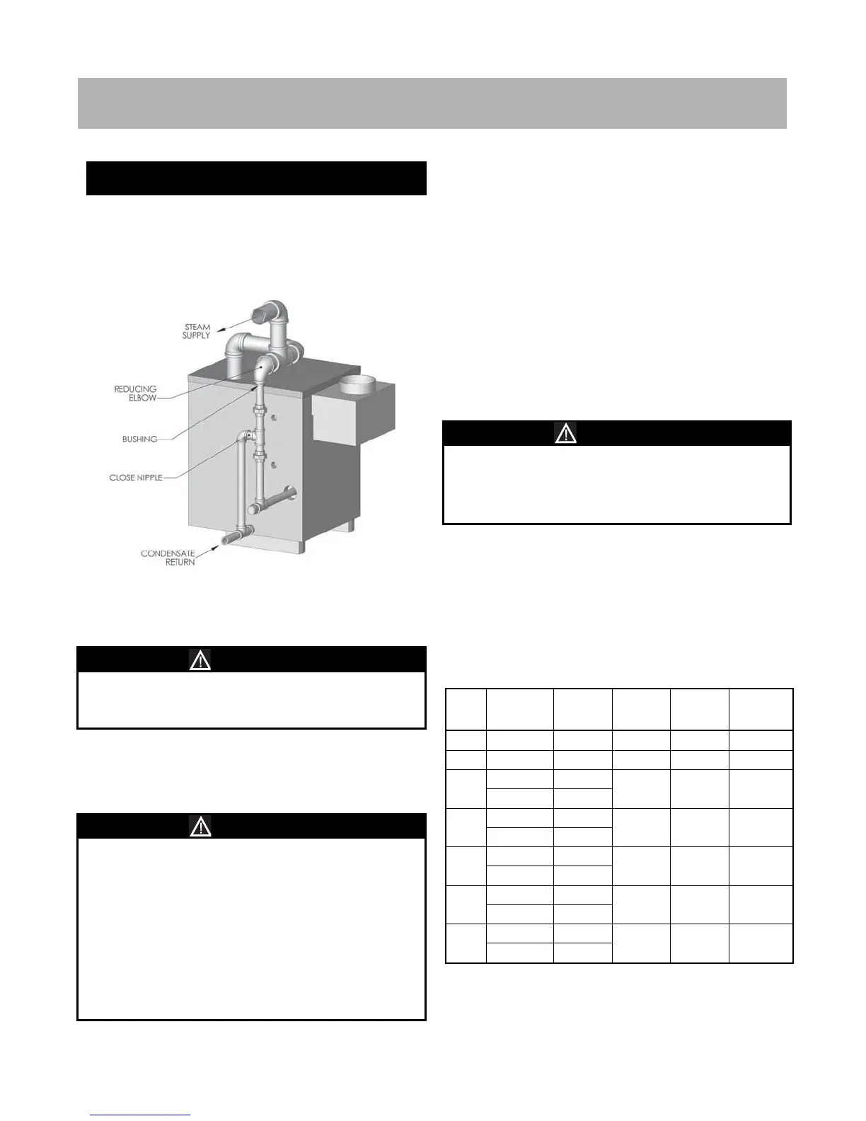 1. Install steam supply pipes as shown in Figure 4.1. The