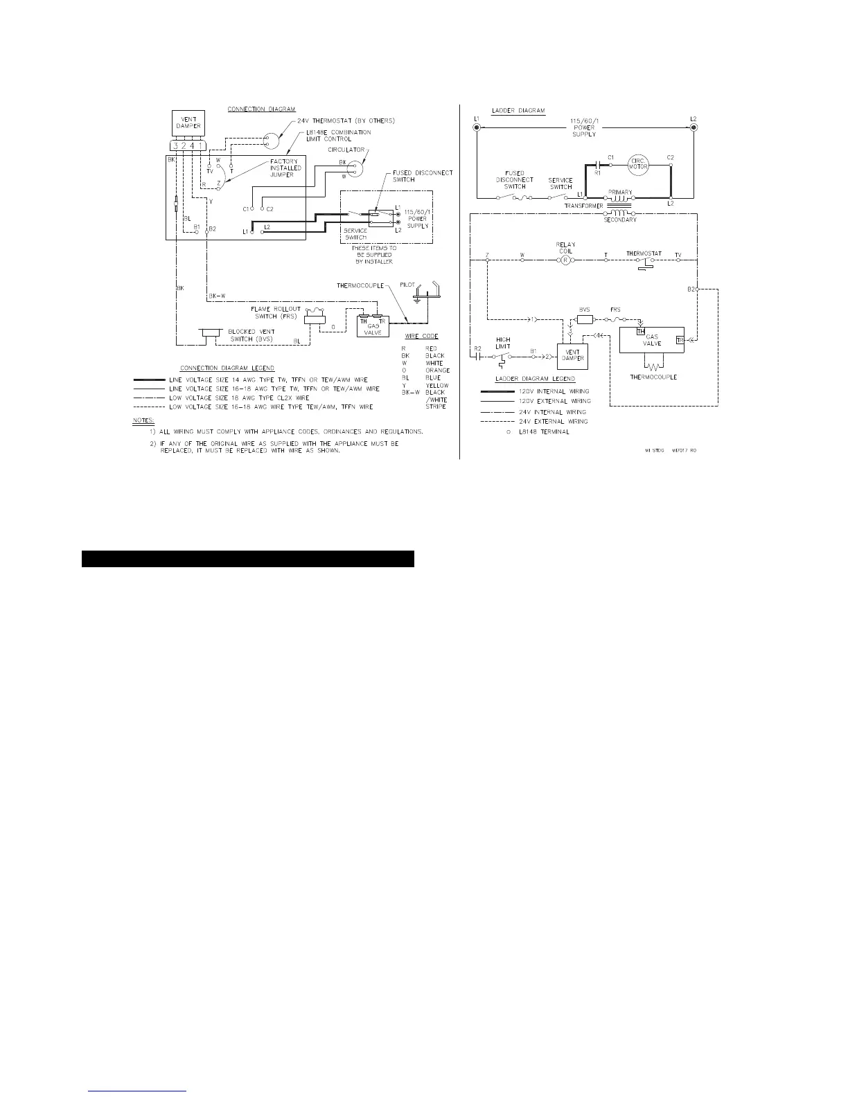 Figure 6.2: Wiring and Connection Diagram – Standing Pilot (Continuous Ignition)