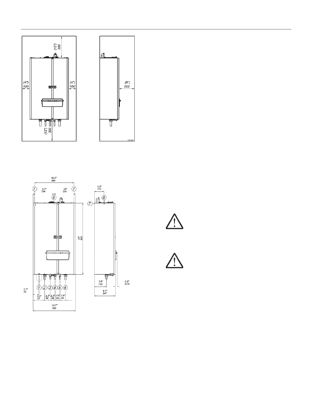 Figure 8 shows the clearances required for installation and