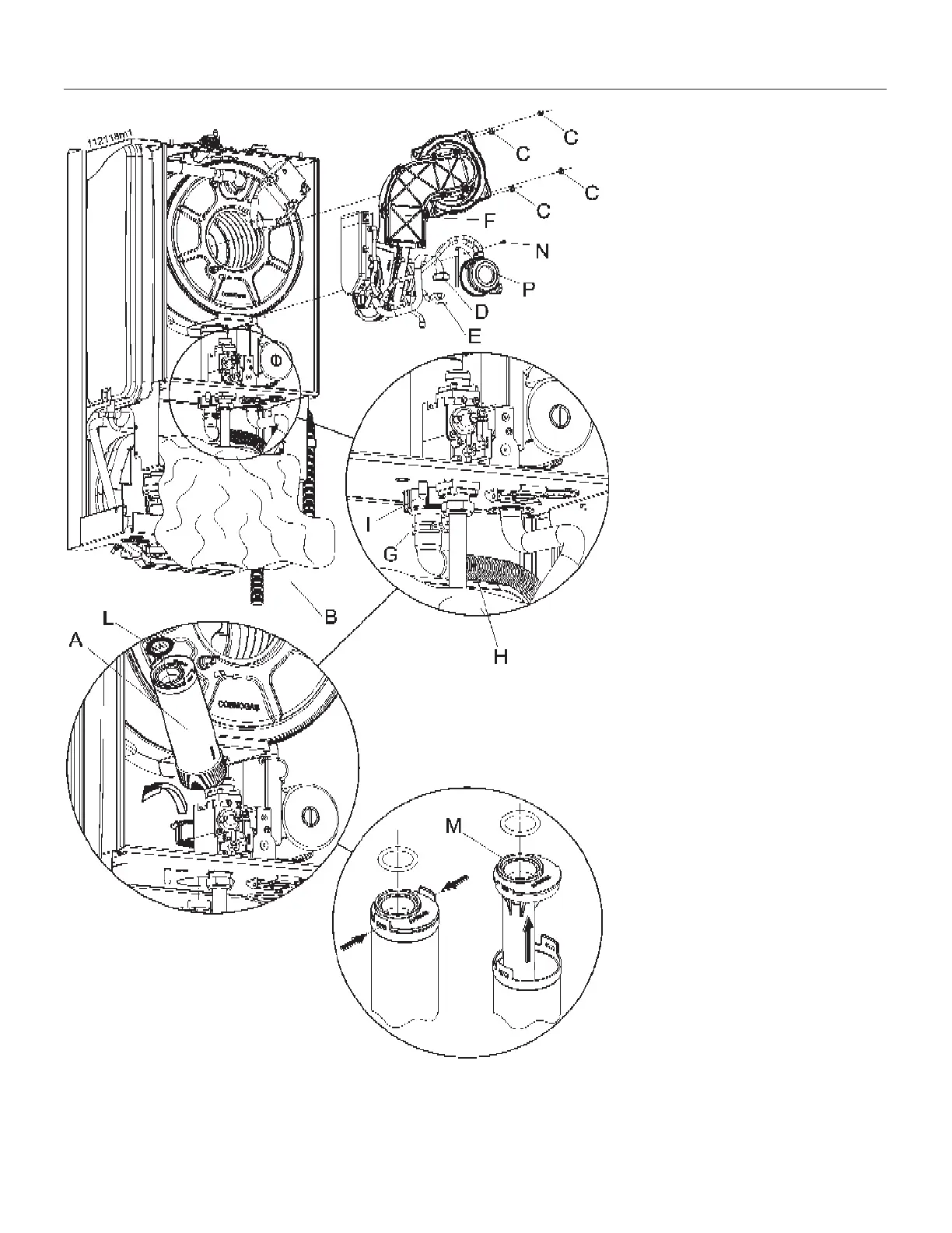 unscrew nut “I” from the bottom of