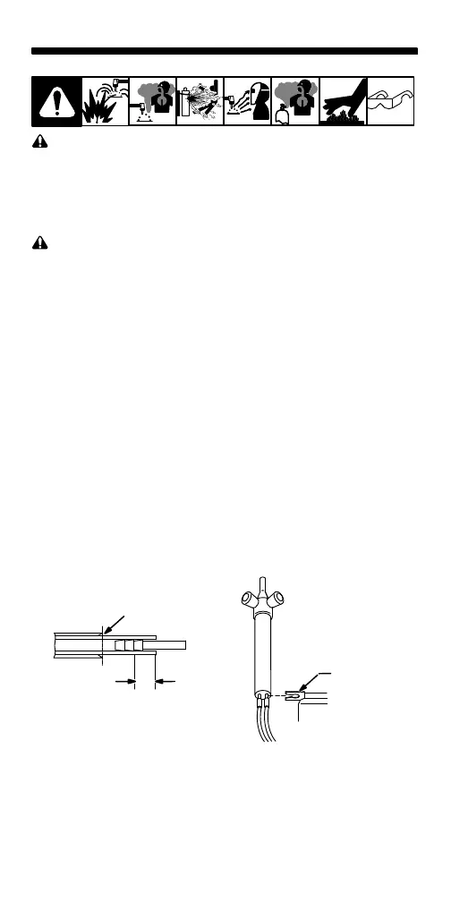 on each hose and slide ferrule down each hose 1–2 in. (25–51 mm).