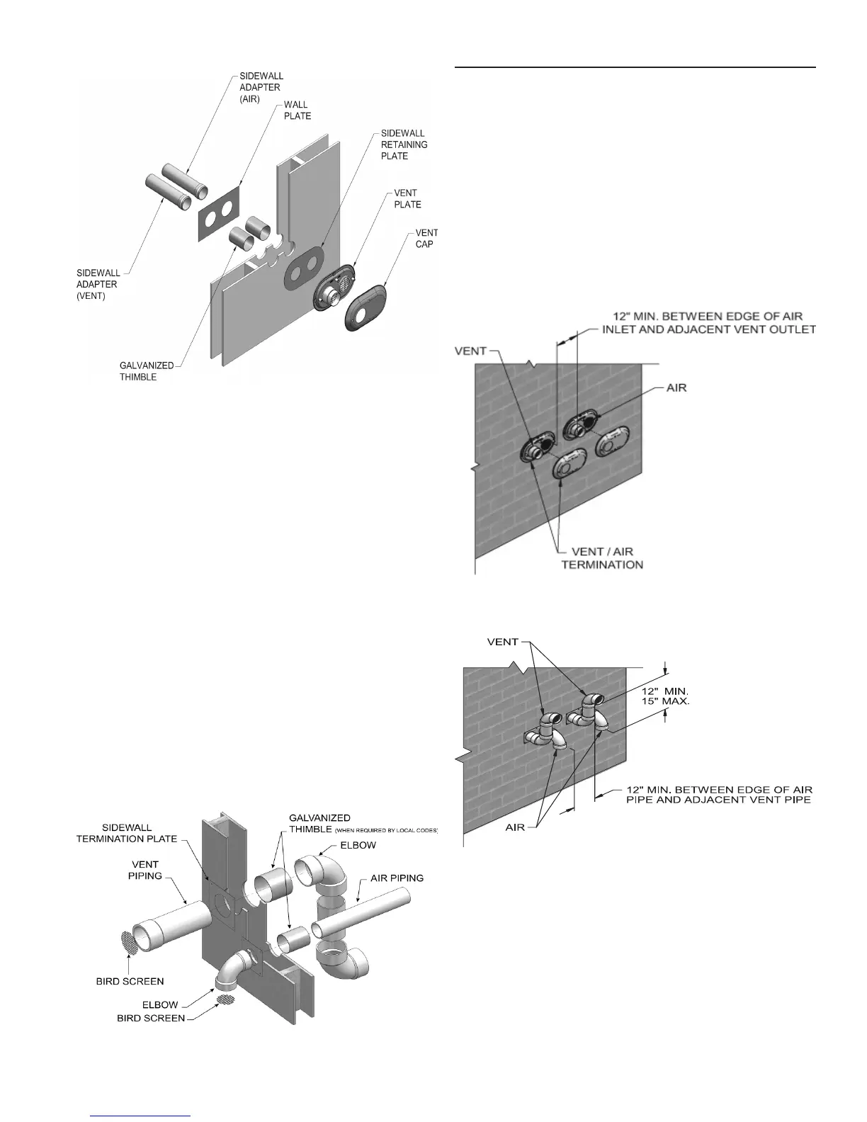 inches between edge of air inlet and adjacent vent outlet, as