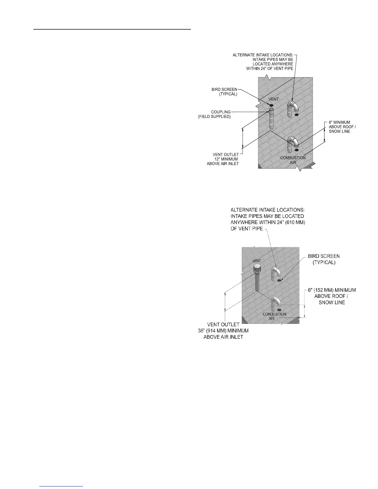 (914 mm) above the air inlet. The air inlet pipe and vent pipe