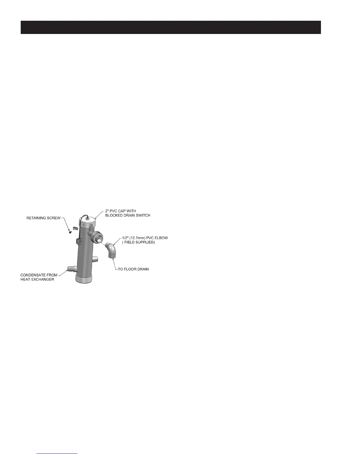 from the condensate drain line. Failure to ll the trap could result