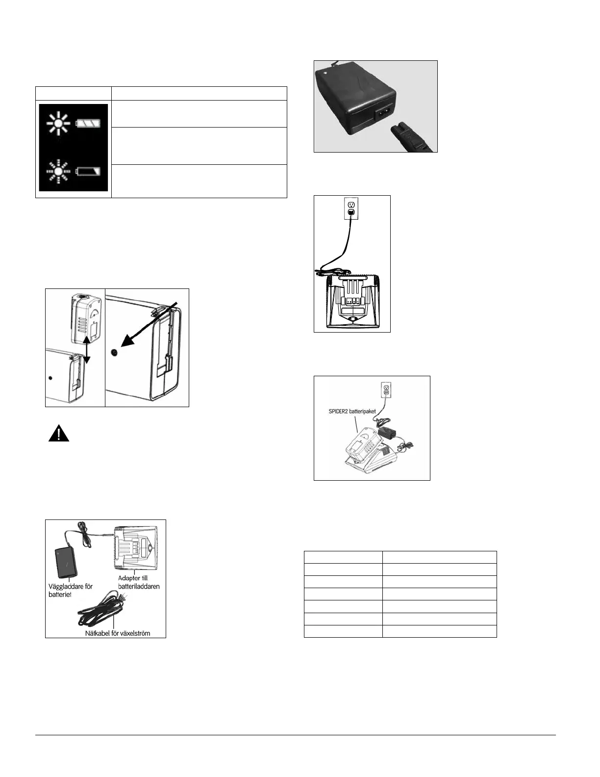 sken. Batteripaketet till SPIDER2 kan förvaras i batteriladdaradaptern när det inte