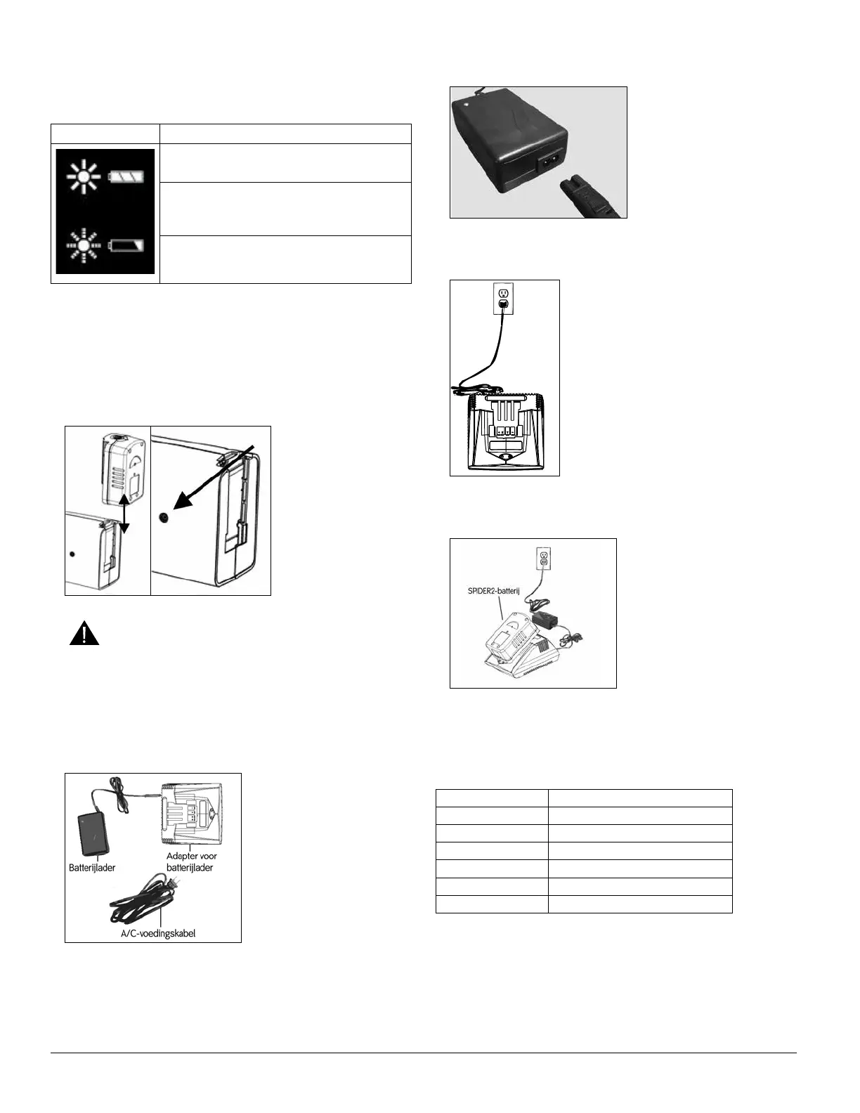 De SPIDER2- batterij kan op de batterijlader worden bewaard wanneer hij niet in