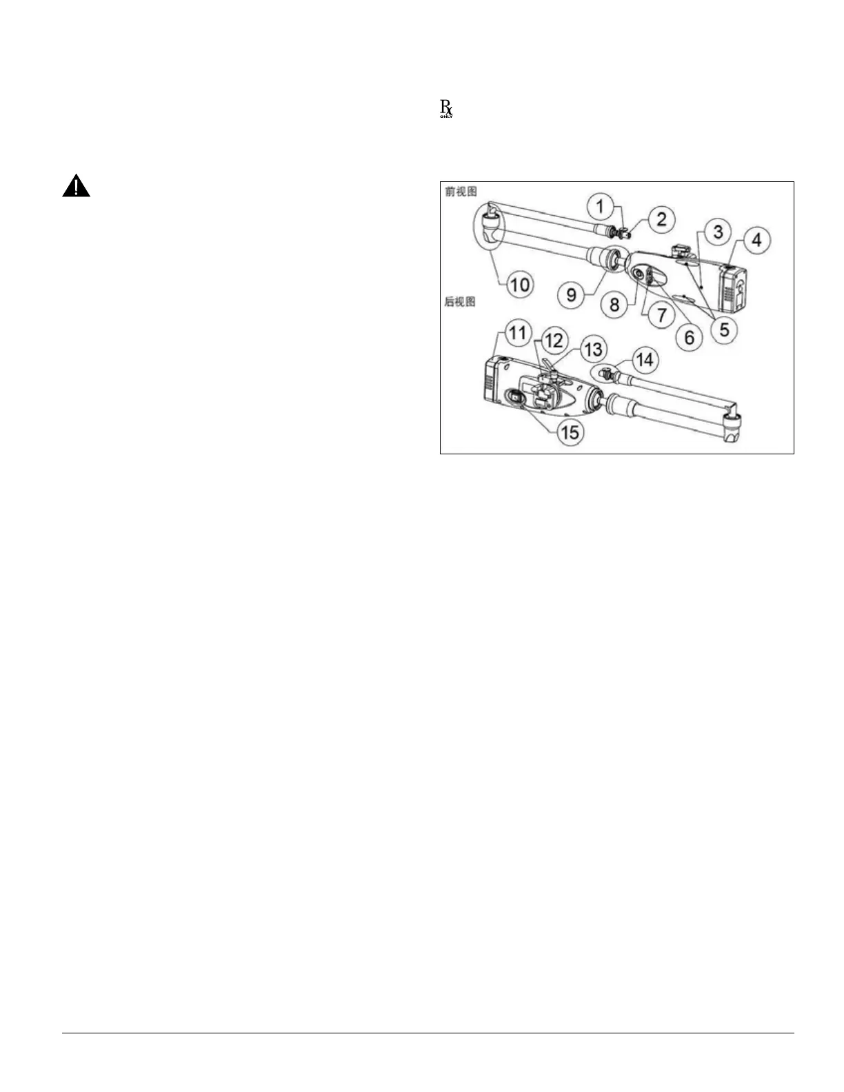• 切勿使用任何已损坏的组件。损坏的设备或组件可导致患者和/或专业医护人员受伤。