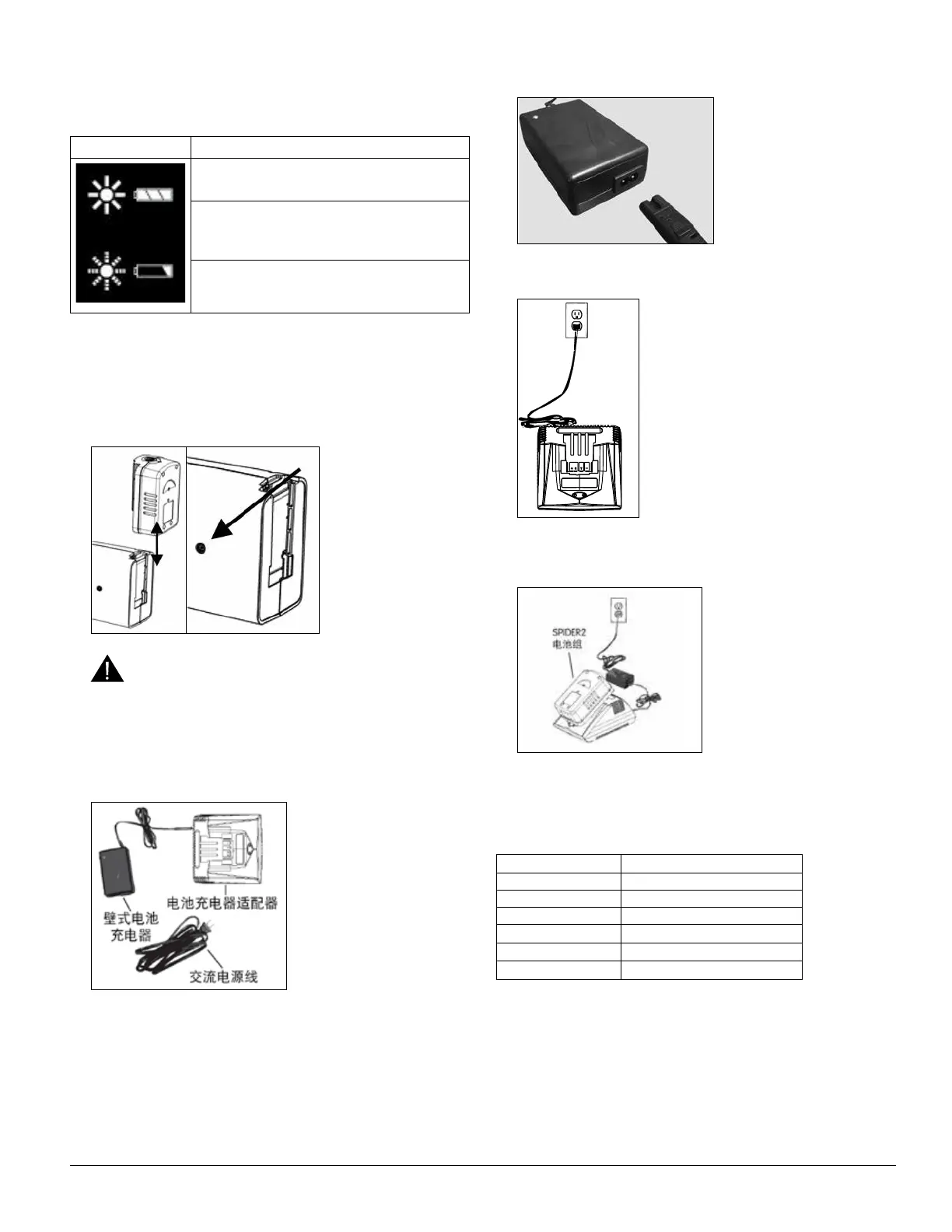 4. 壁式电池充电器灯变为恒绿即表示电池已充满电。SPIDER2 电池组在不使用时可存放在