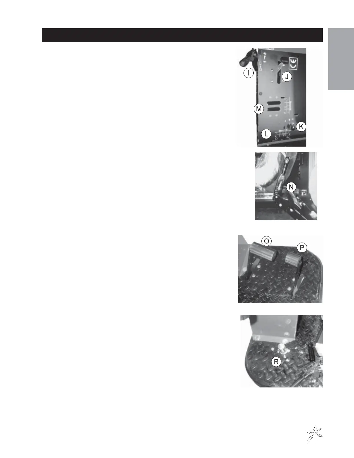 O. Accelerator Pedal - This pedal controls ground speed. Press pedal to