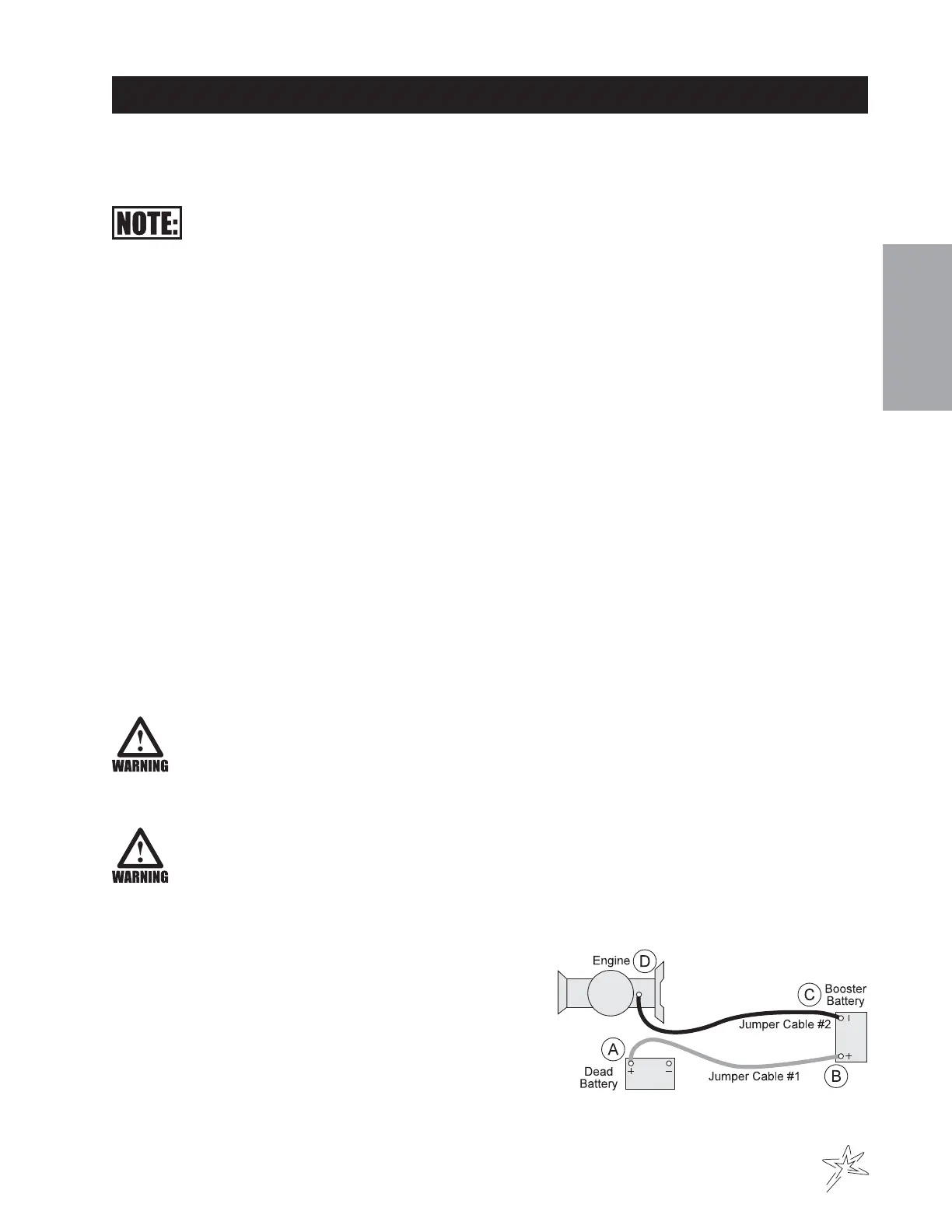 Use of booster battery and jumper cables. Particular care should be used when connecting a booster