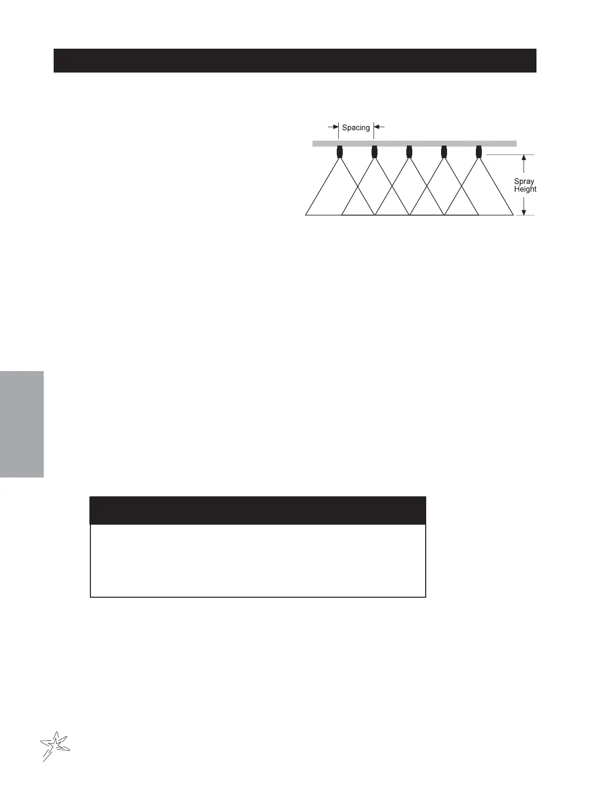 excessive overlap develops. If nozzles are too low, there is not enough overlapping of nozzle spray patterns.