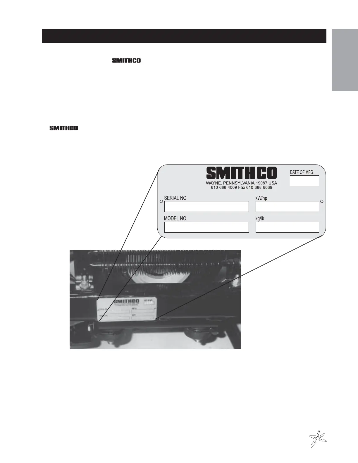 parts. The serial number plate on the Spray Star 1000 is located on the right main frame, in front of the oil tank.