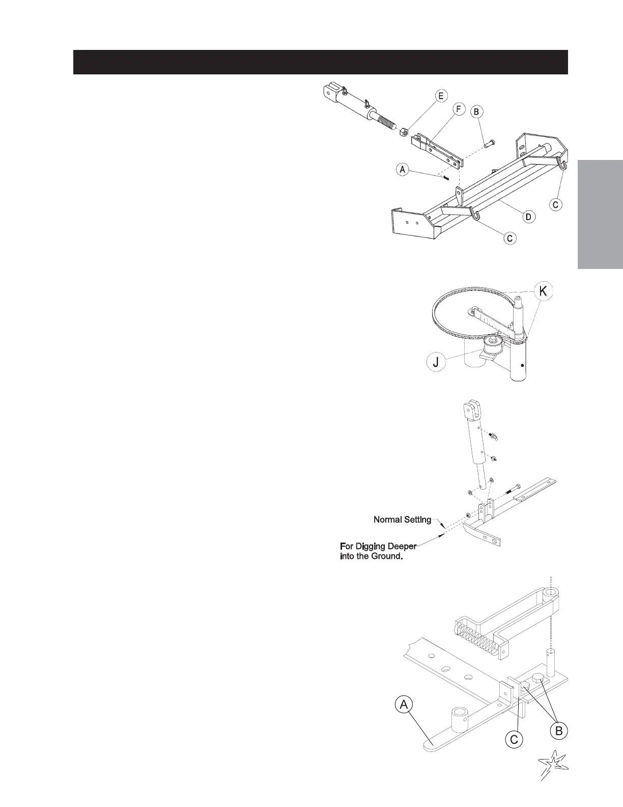 above cross member (D) on Rake Lift. Loosen jam nut (E).