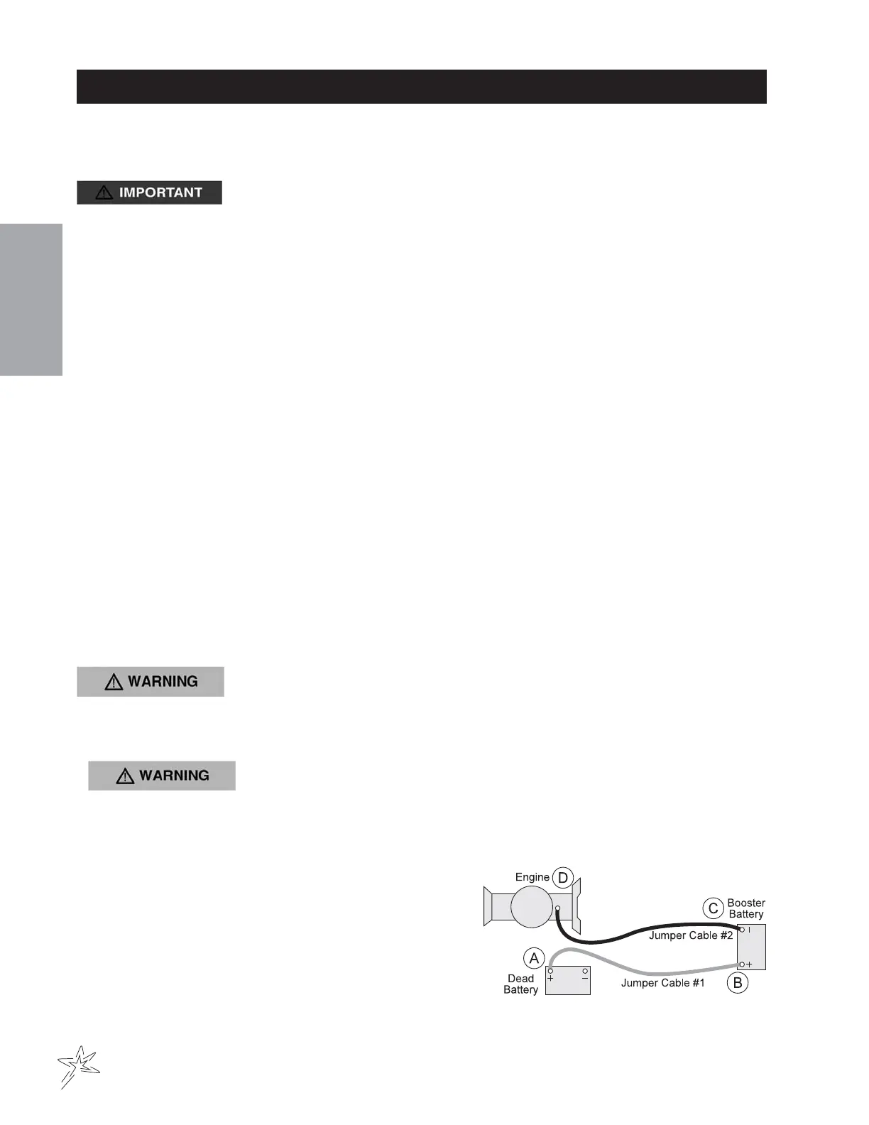 connecting a booster battery. Use proper polarity in order to prevent sparks.