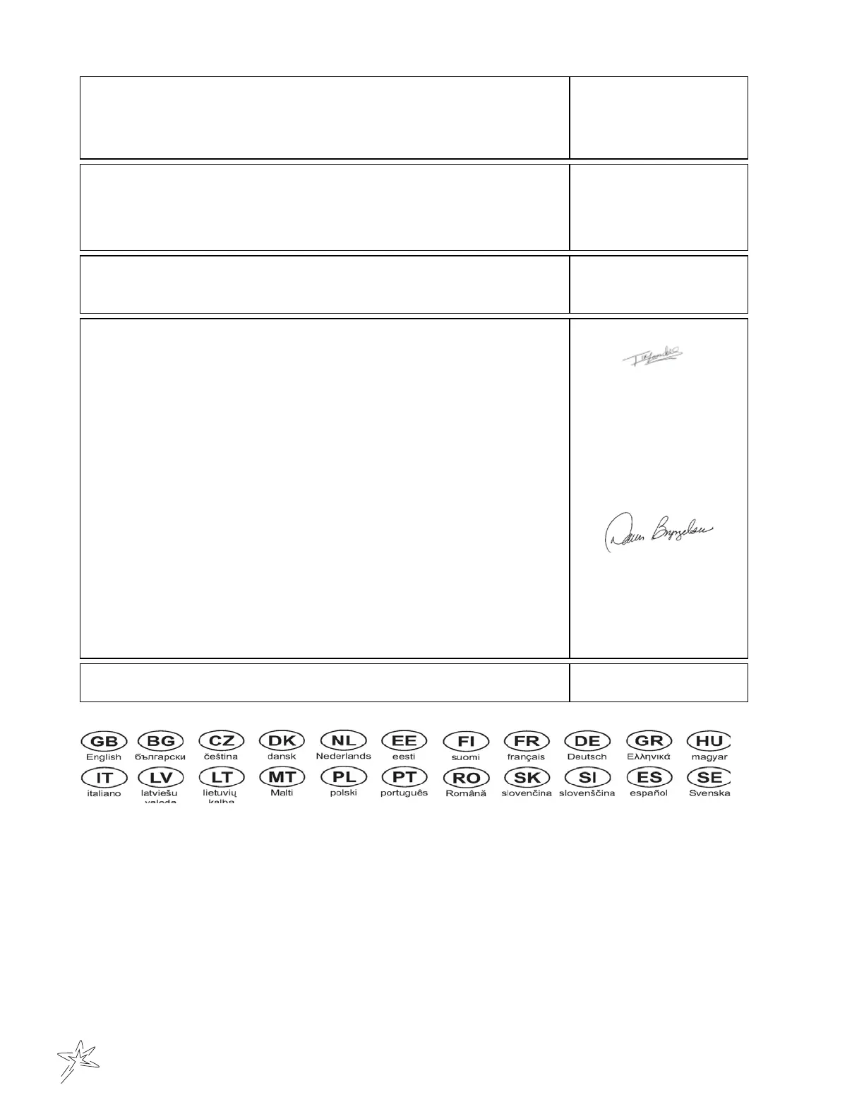 Comunidade.Semnătura persoanei împuternicite să elaboreze declaraĠia în numele producătorului, care deĠine documentaĠiatehnică, este