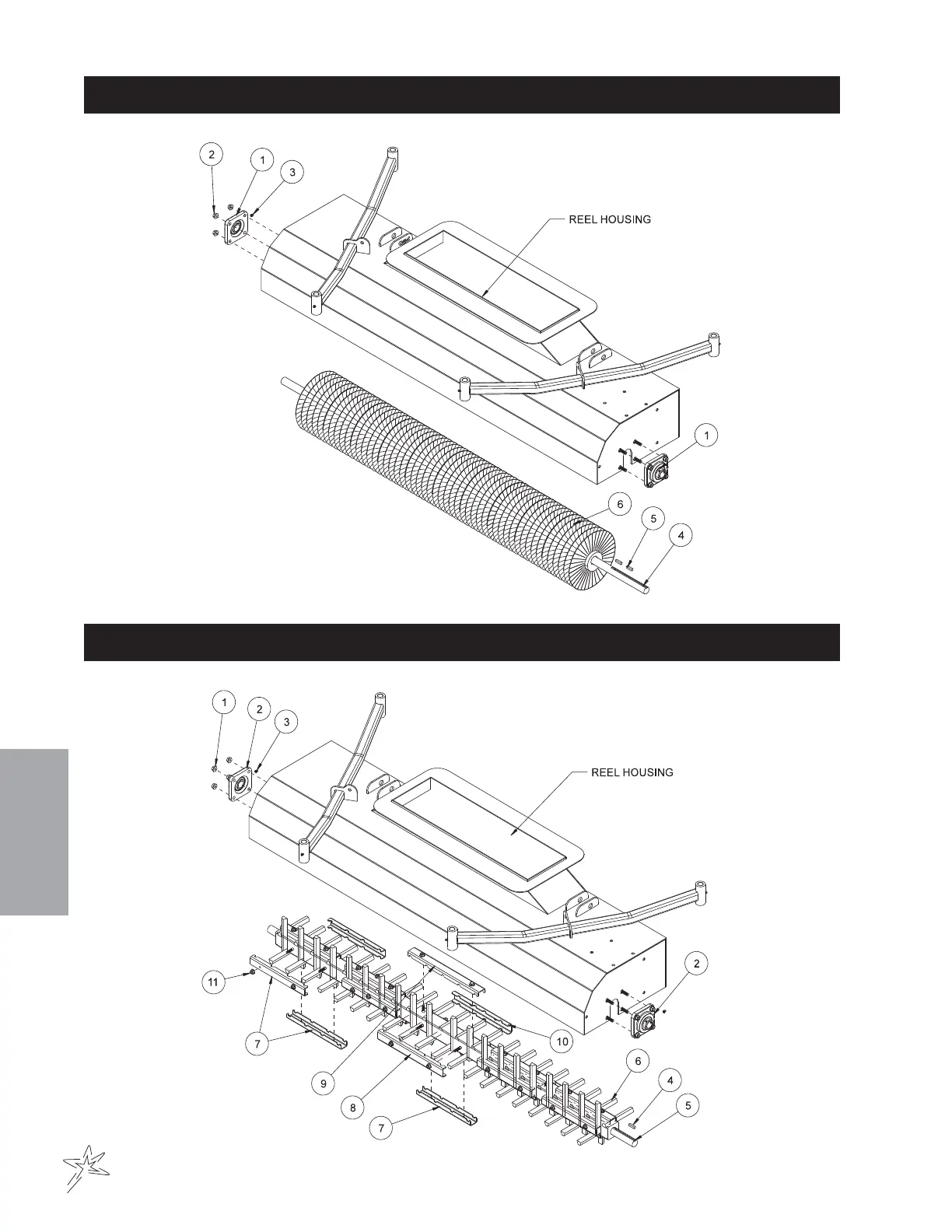 Smithco SweepStar V62 - 78-201 Replacement Brush Reel Drawing; 78-202 Replacement Finger Reel Drawing