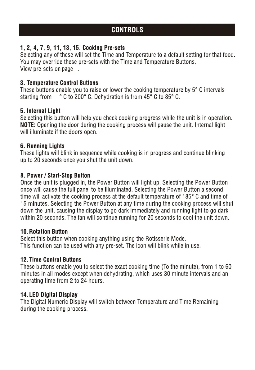 smith+nobel TM-AF1056W - Cooking Pre-sets; Temperature Control Buttons; Power; Start-Stop Button; Rotation Button