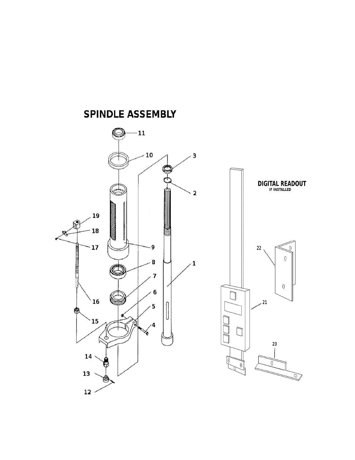 Smithy MI-329M - SPINDLE ASSEMBLY; DIGITAL READOUT (IF INSTALLED)