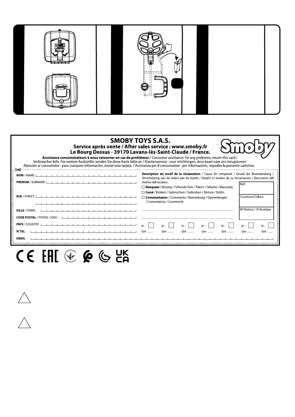Smoby 721007 - Safety and Customer Information; Customer Service and Warranty Information; Essential Safety Warnings