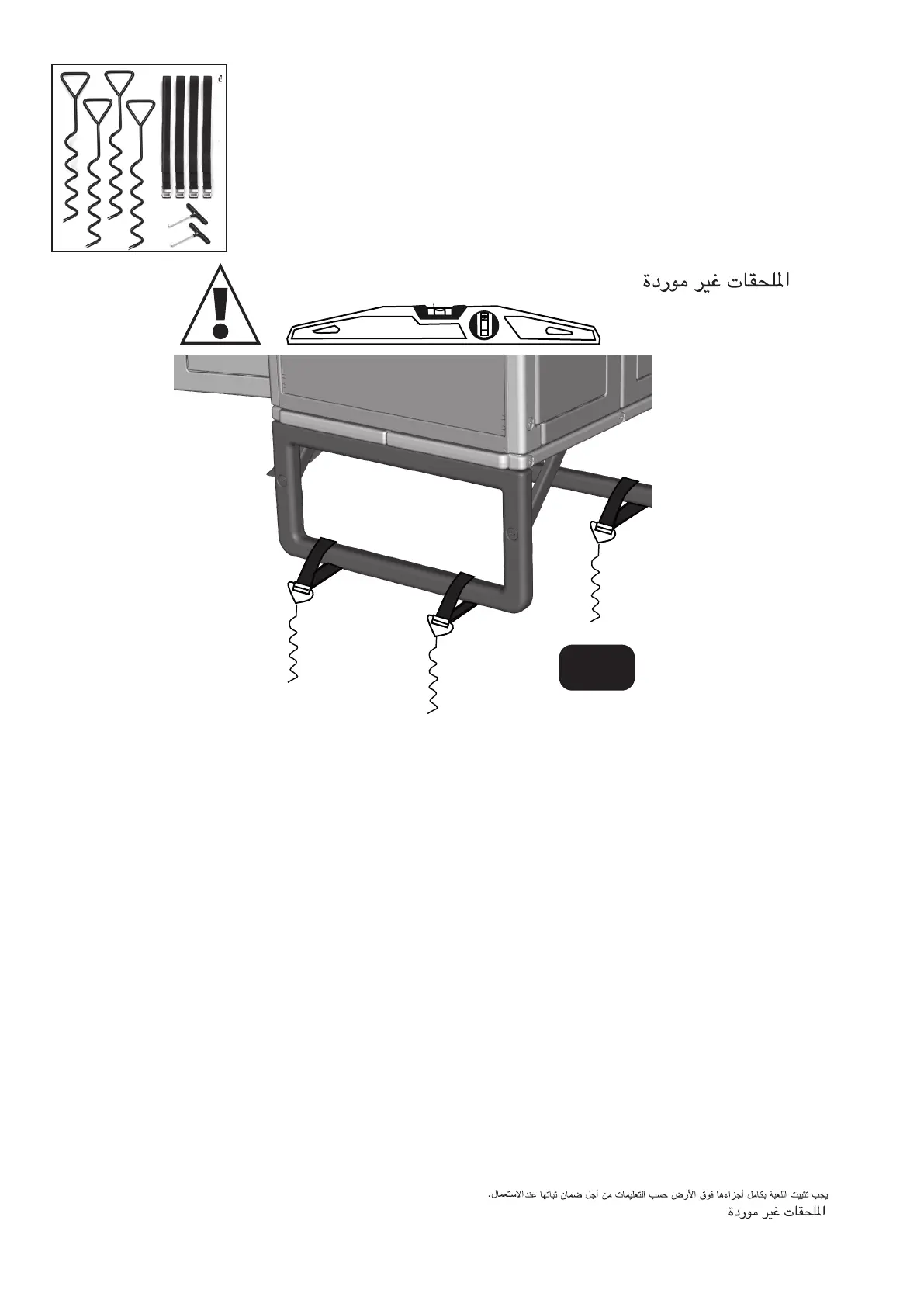 lingene for å sikre stabiliteten ved bruk. Tilbehør følger ikke med. H •Az utasításokat követve, az egységet kötelező módon a talajhoz kell rögzíteni,