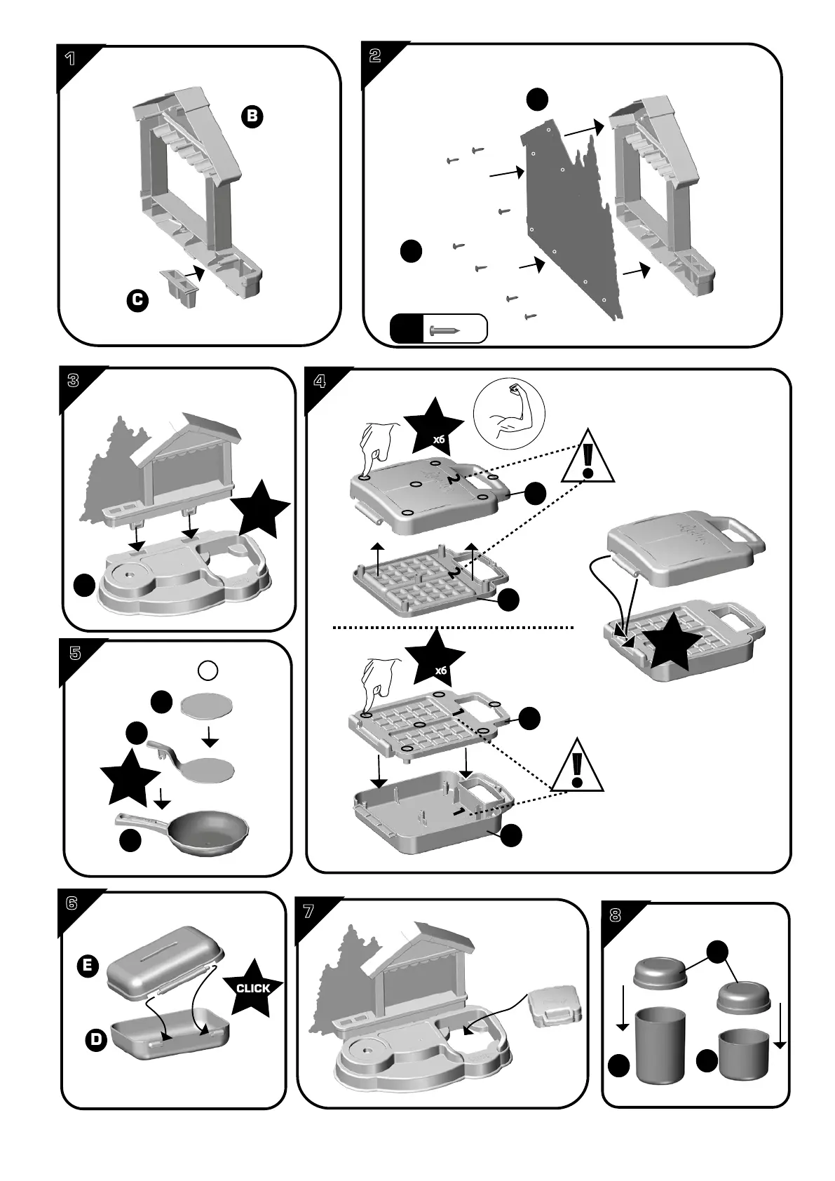 Smoby GOURMAND CHALET - Assembly Instructions; Step 1: Assemble Base Structure; Step 2: Attach Back Panel; Step 3: Position Front Base