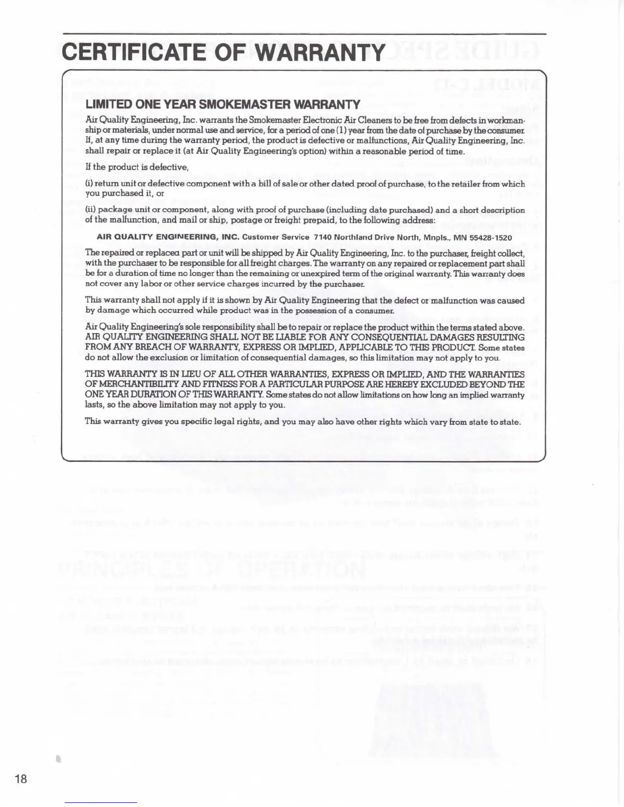 Smokemaster C-12 - Warranty Information; Limited One Year Warranty