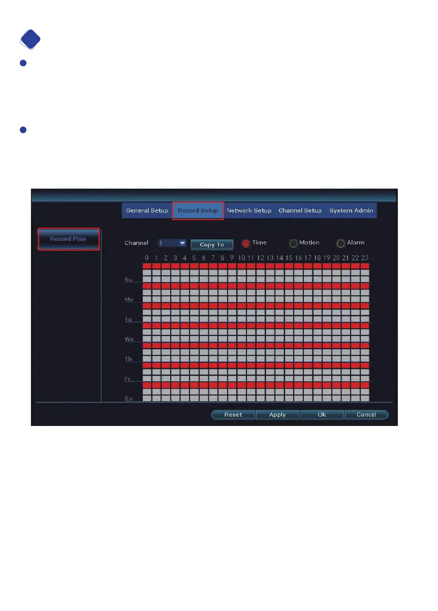 Factory default setting is playing 24 hours/ 7days recording for all channels.