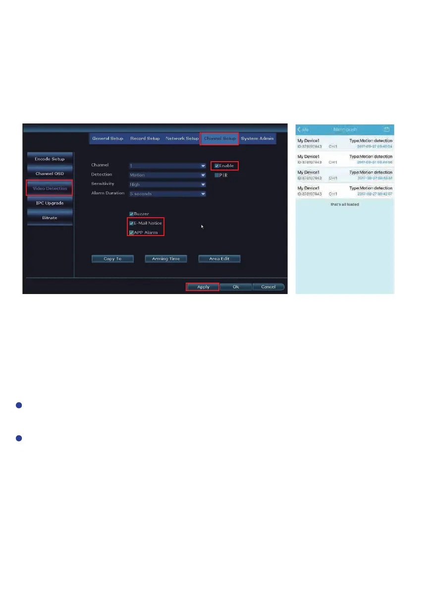 detection. Next, select the following: Enable for Motion Detection, E-mail Notice, and