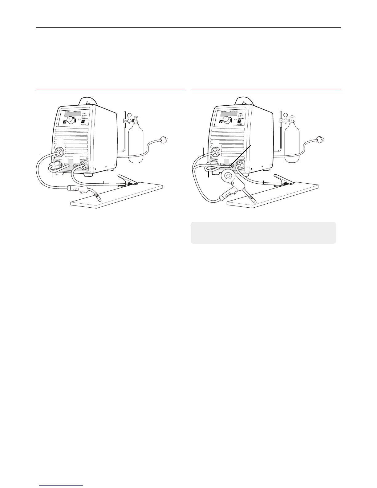 1 Connect the gas cylinder to the regulator. Select correct shielding gas