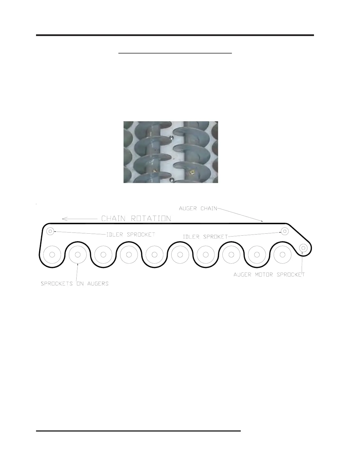 6. Start engine and operate Augers to verify timing, sprocket alignment, and chain rotation.