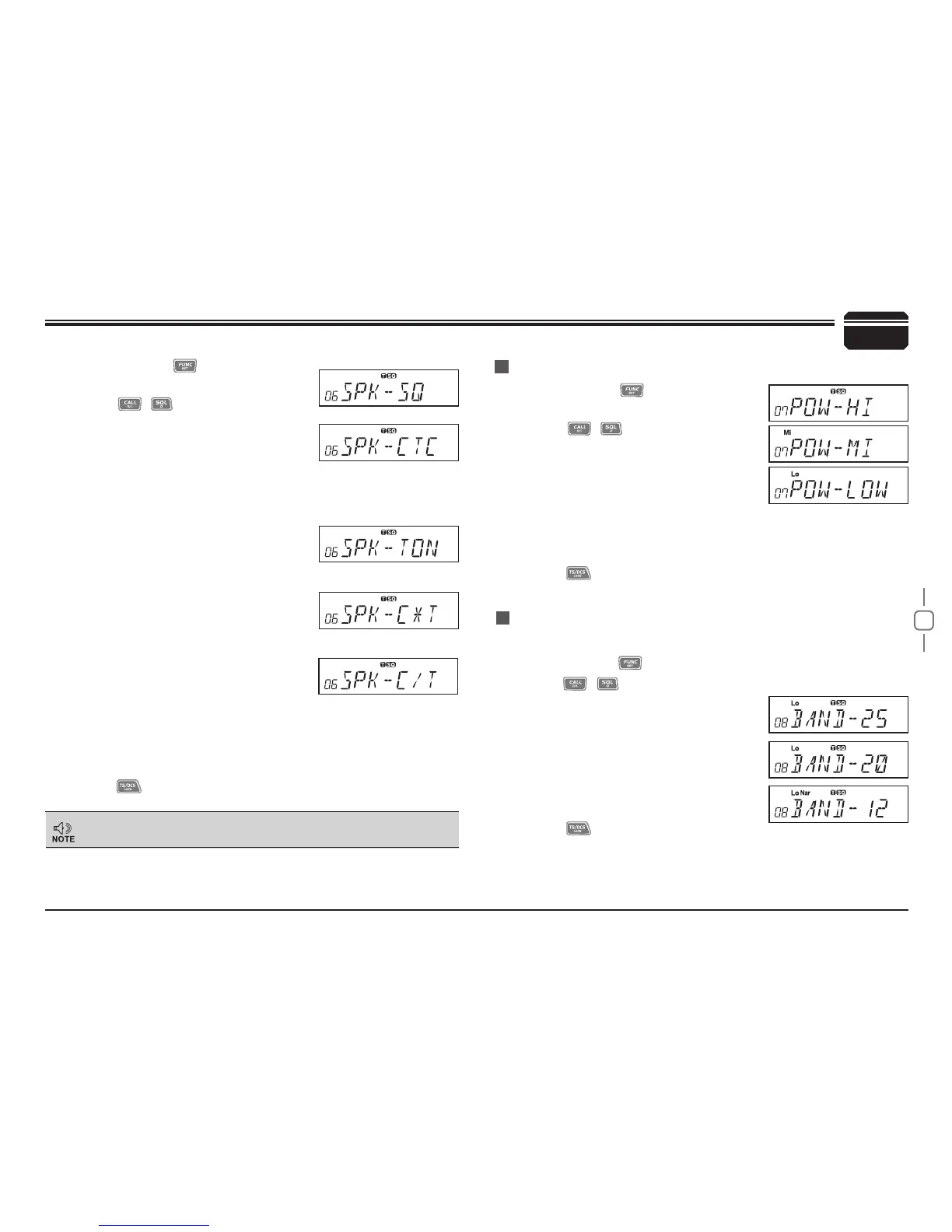 menu, LCD displays "SPK--SQ".