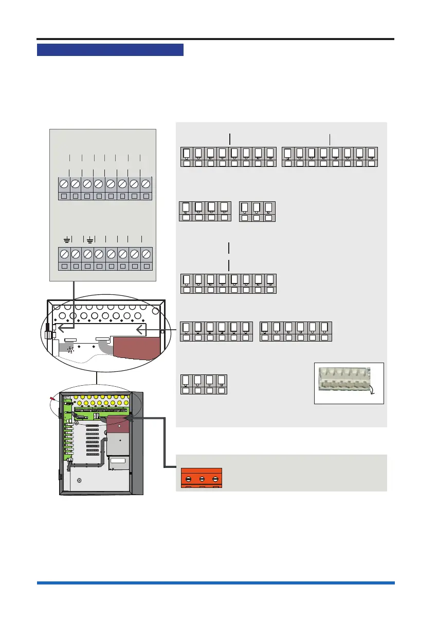 The Terminal card holds all the terminals for the connection of external circuits. The