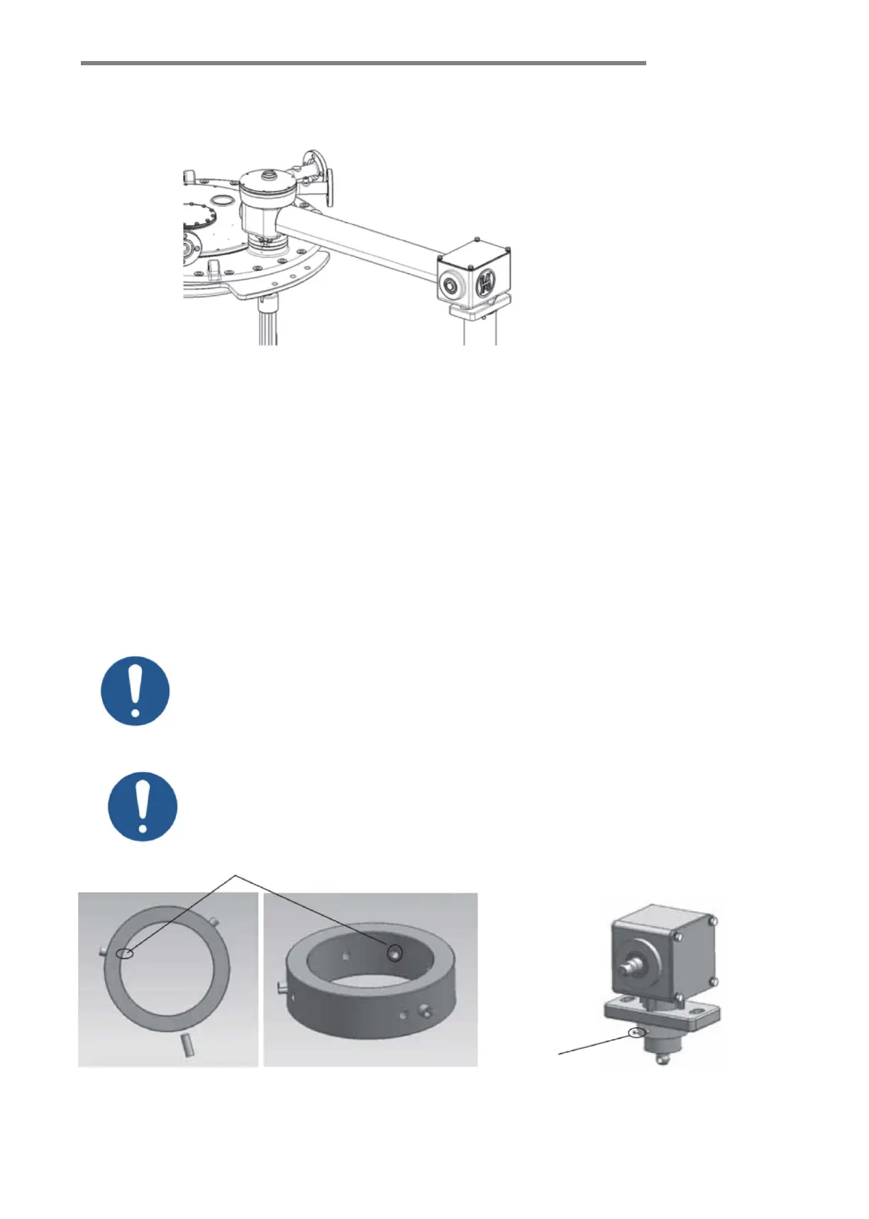 9.6.2.2 Place the bushing HM8210.303.3 at the lower end of the bevel gear box and fix with 4 pieces of