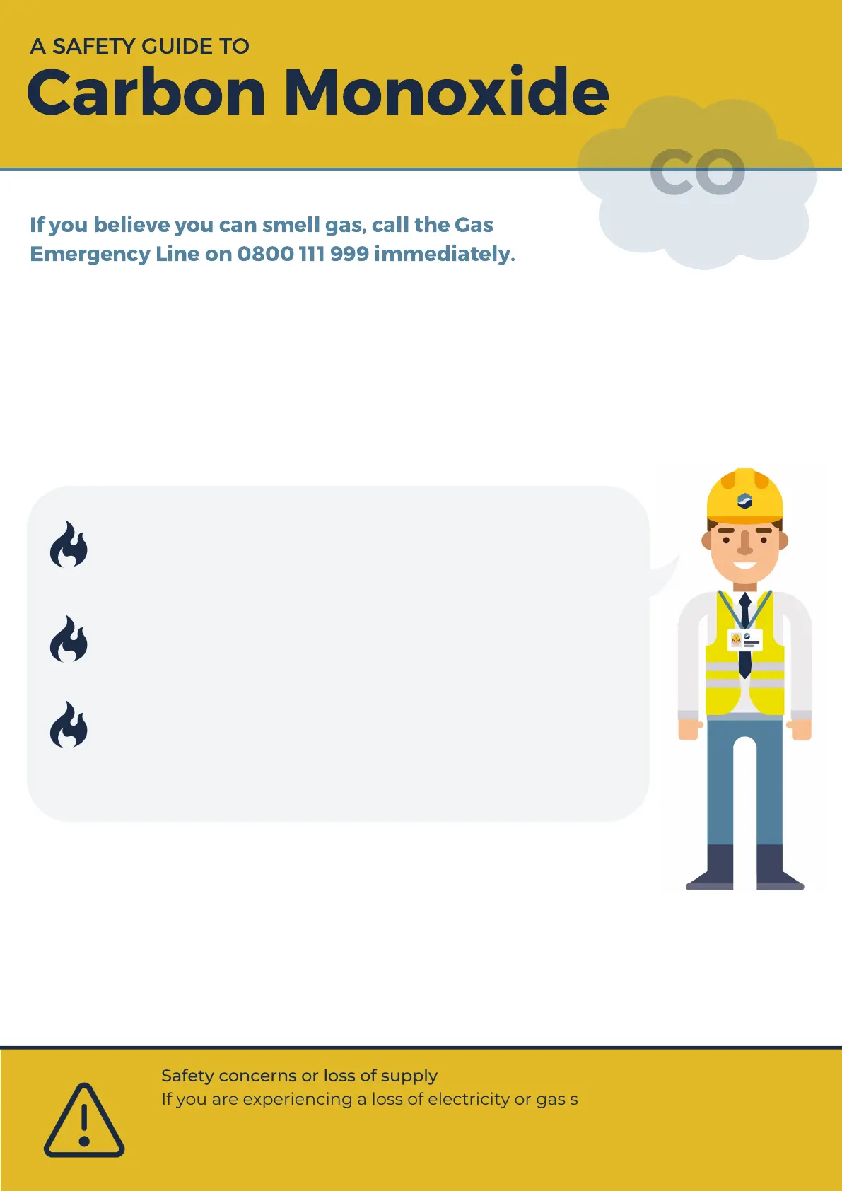 If you are experiencing a loss of electricity or gas supply or have any safety
