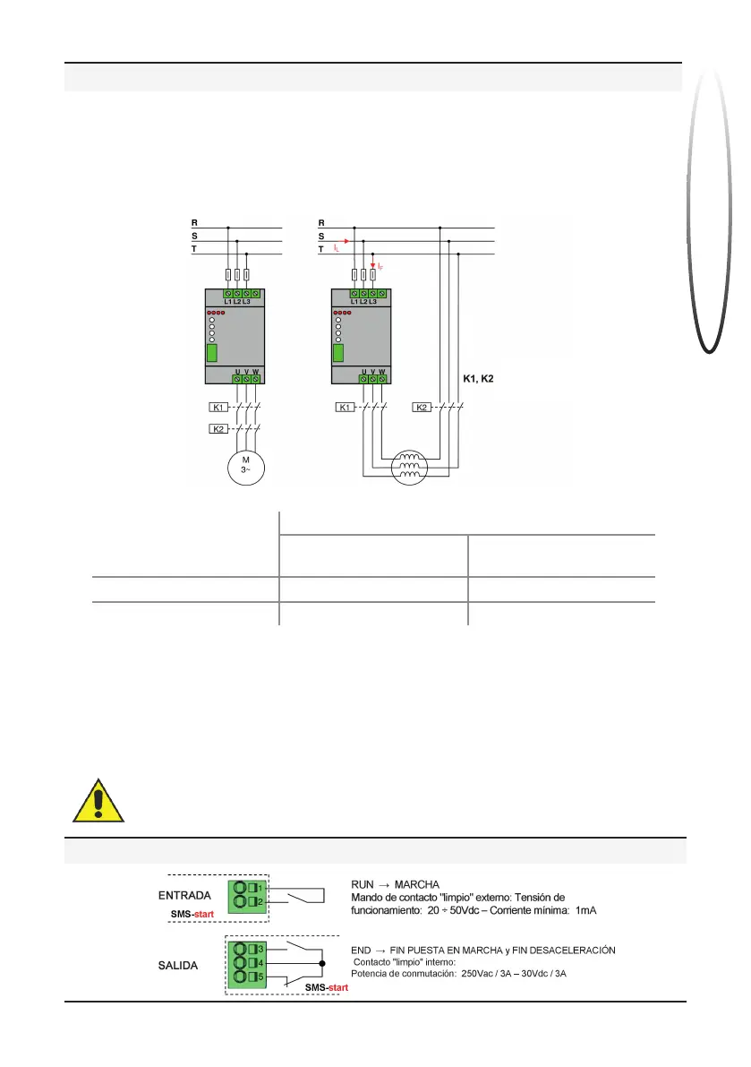Se recomienda realizar la conexión de SMS-start antes de los contactores del motor dado