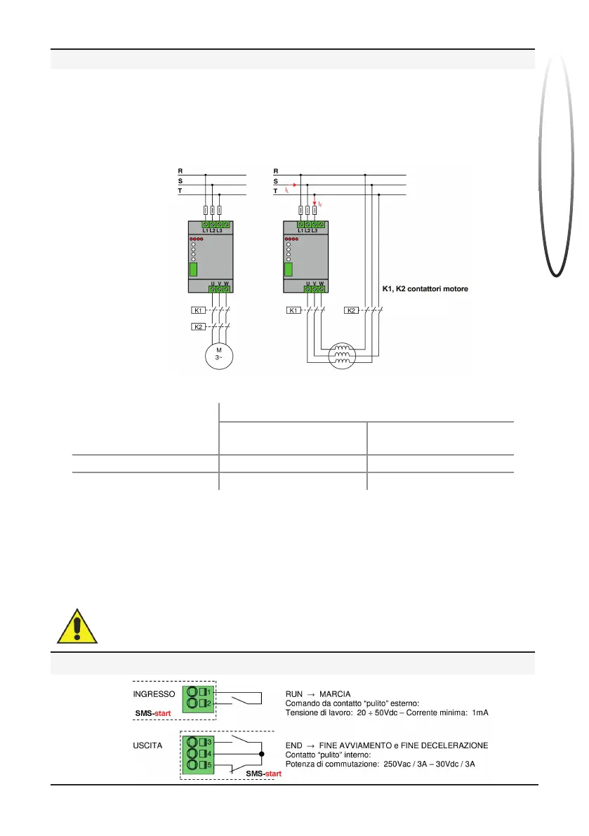 E’ consigliato il collegamento di SMS-start a monte dei contattori motore perchè quando viene tolta