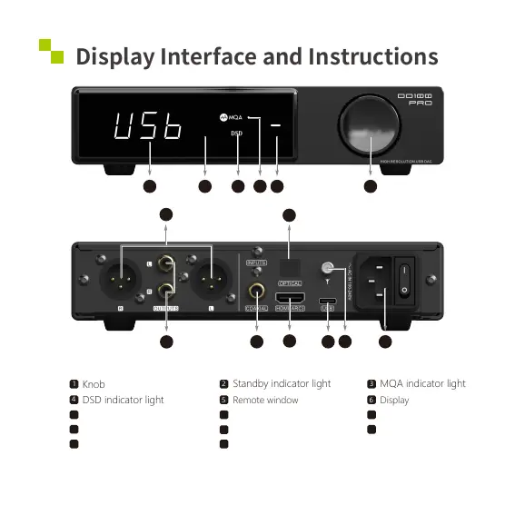 SMSL DO100 PRO - Device Interface and Components; Front Panel Identification