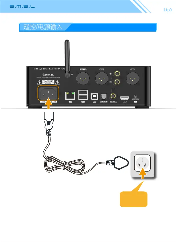 注意:请使用带接地线良好的电源插座以确保安全及避免噪声。