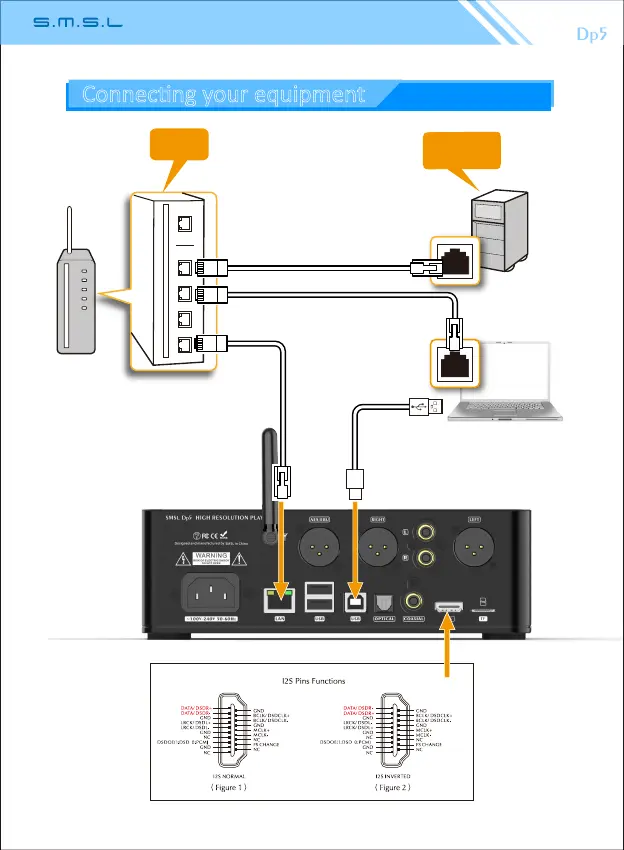 SMSL DP5 - Connecting Equipment; Network and I2 S Connections