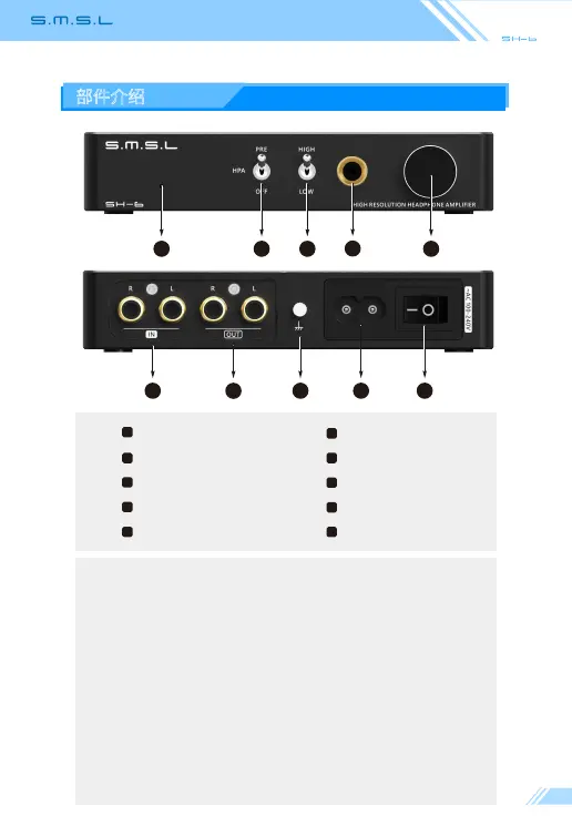 b.白色表示耳放输出;