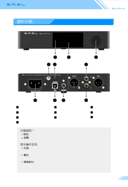 连接: 将输入源切换至蓝牙,打开手机蓝牙功能,搜索"SMSL SU-9 PRO", 搜索