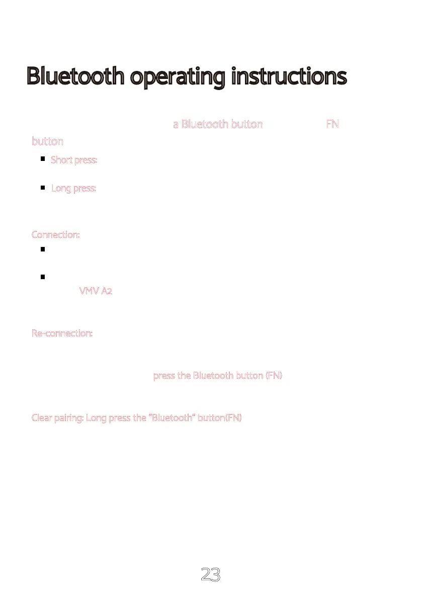 Clear pairing: Long press the “Bluetooth" button(FN) on the remote control. After clearing
