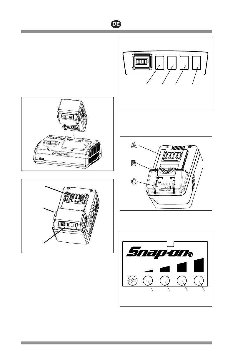 Akkuanzeige leuchten; am Ladegerät leuchtet eine grüne