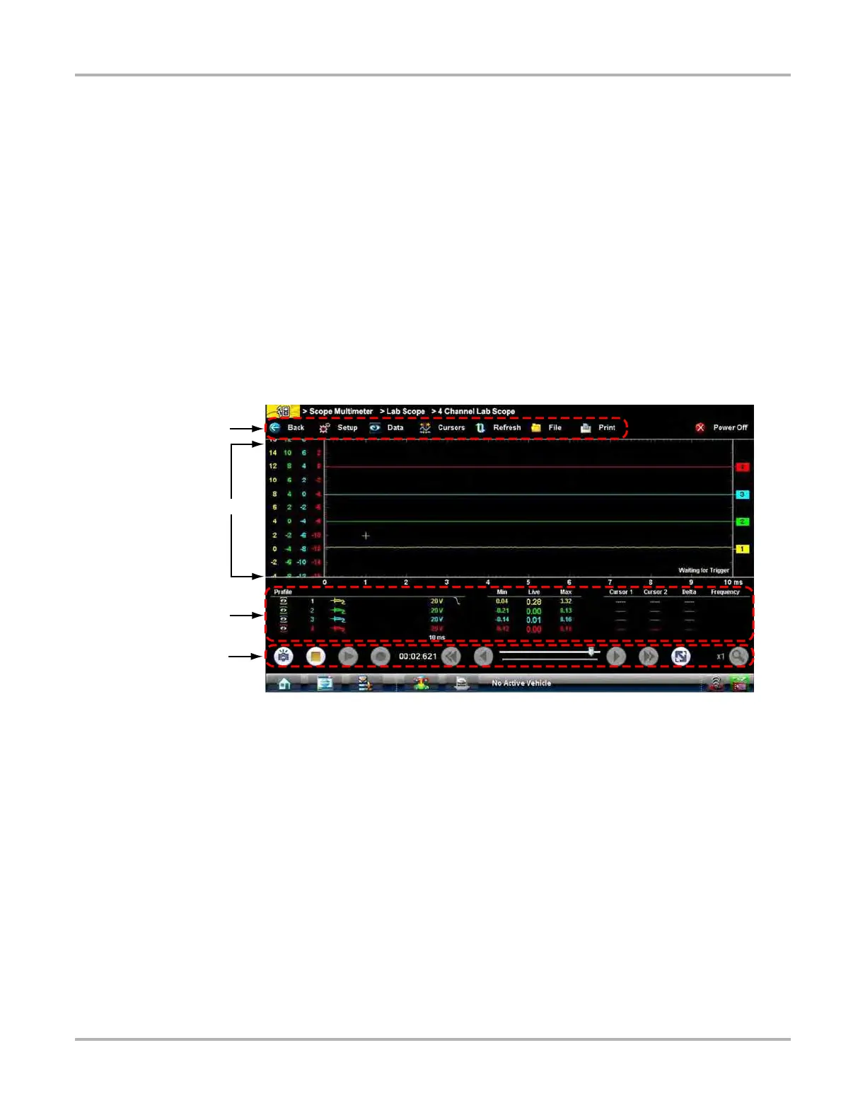 • Scope Multimeter Toolbar—allows you to configure the tool for the type of test and to adjust
