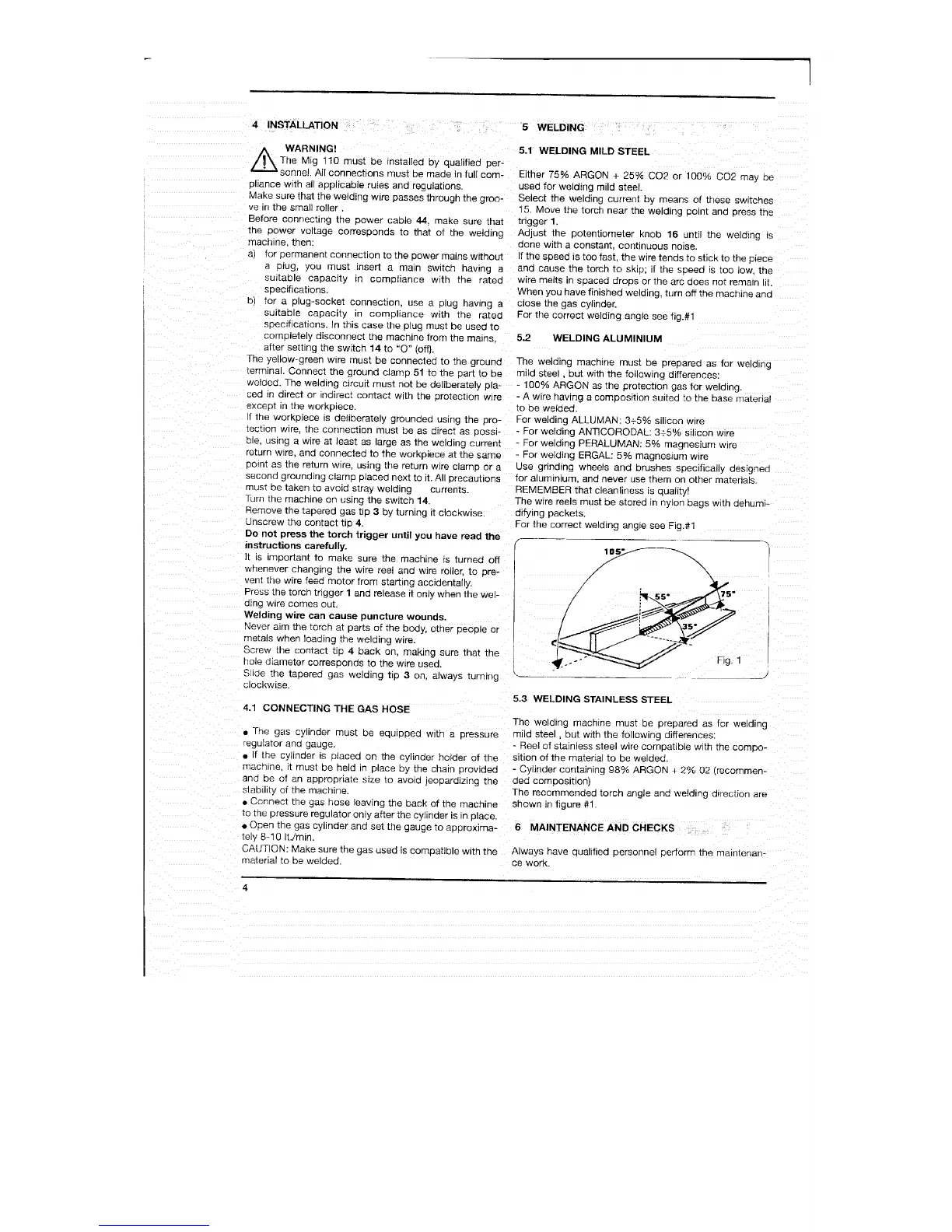 Snap-On MIG 110 - Welding; Welding Mild Steel; Welding Aluminium; Connecting the Gas Hose