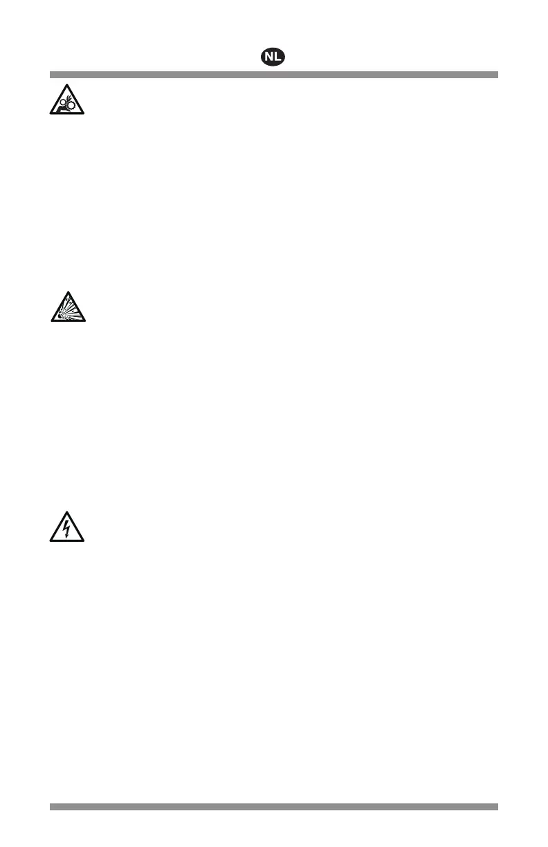 • Niet gebruiken in de buurt van ontvlambare dampen of
