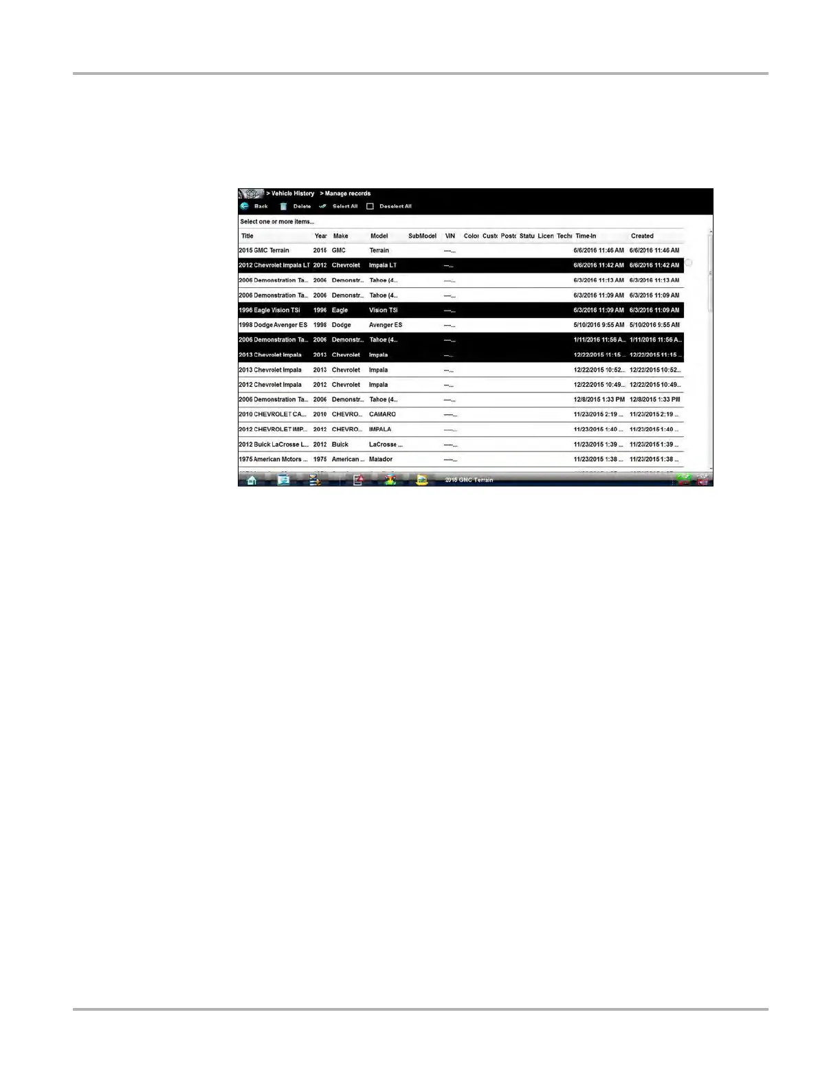 records list. Highlight the record to remove, then select Delete, or use the Select All or Deselect