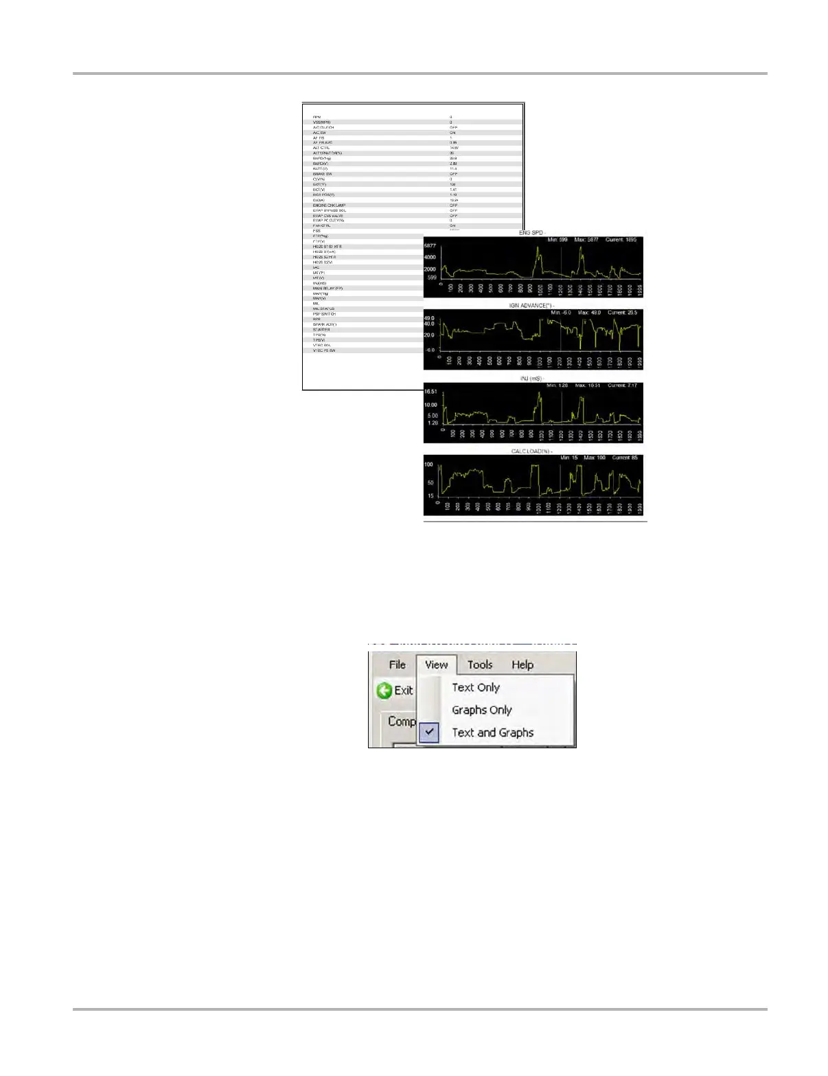 • Text and Graphs—shows all parameters and their values as text in the left panel of the