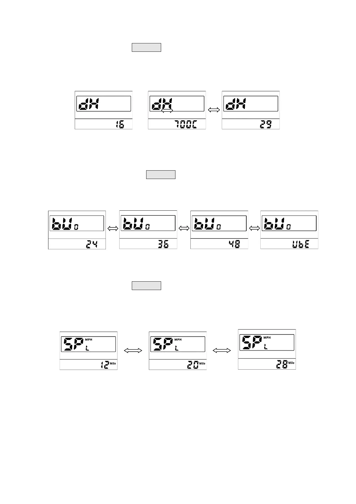 Wheel Size (dH): Press the UP/DOWN buttons to change the wheel size setting. Options